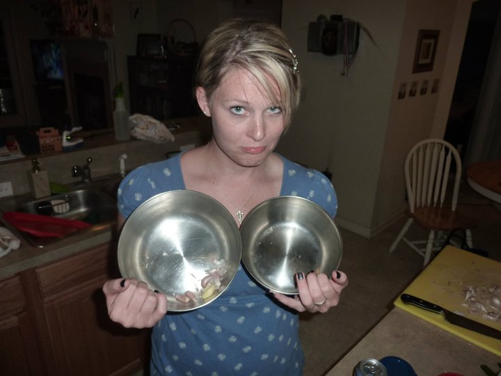 So while Lancey-Pants was cooking up the main dish, I decided to help with prep work and peel some garlic. Until he pulled out two bowls and said he wanted to try a trick he saw on tv. He then put the unpeeled garlic in one bowl, covered the with the other and "Shake, Shake, Shake Senora". Worked like a charm.
